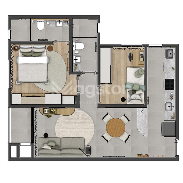 2 dormitórios (1 suíte)