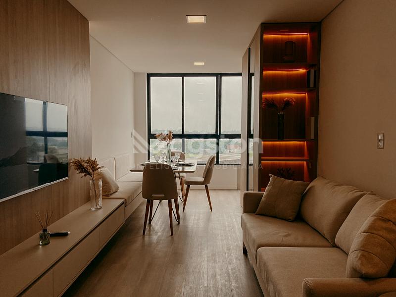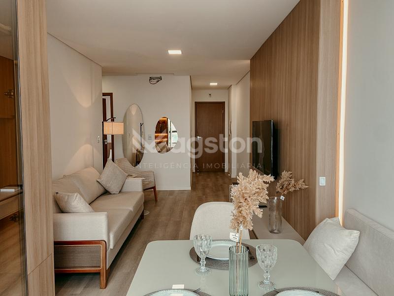 Apartamento com 64,98 m² privativos e 104,09 m² totais, distribuído em 1 suíte, 1 quarto, 2 banheiros, sala de estar, cozinha planejada, área de serviço e 1 vaga de garagem. Condomínio com salão de festas e churrasqueira. Ideal para quem busca praticidade e boa localização.