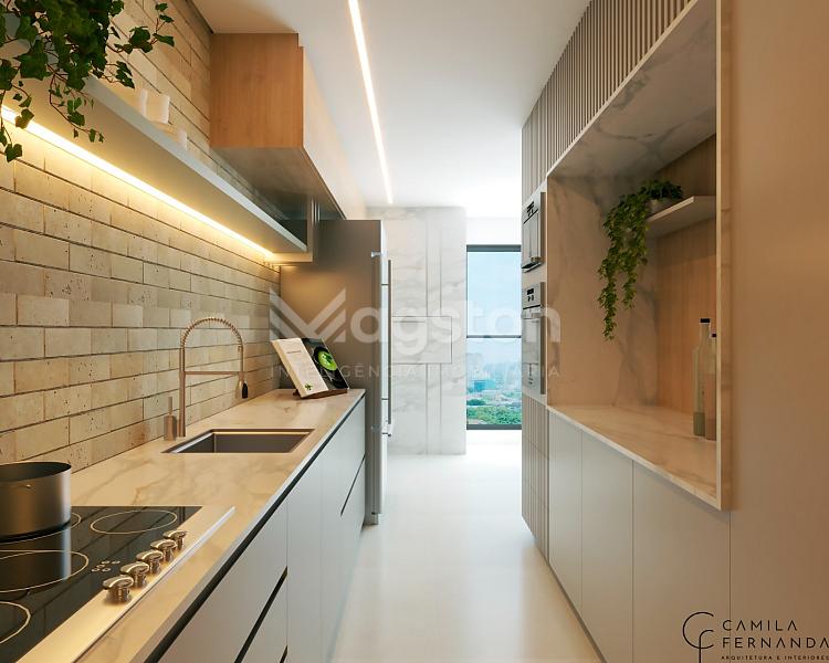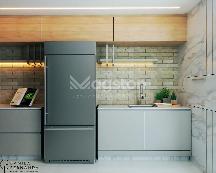 A sala de estar possui um ambiente acolhedor para momentos de relaxamento, enquanto a cozinha, equipada com uma varanda gourmet, é perfeita para preparar suas refeições favoritas.